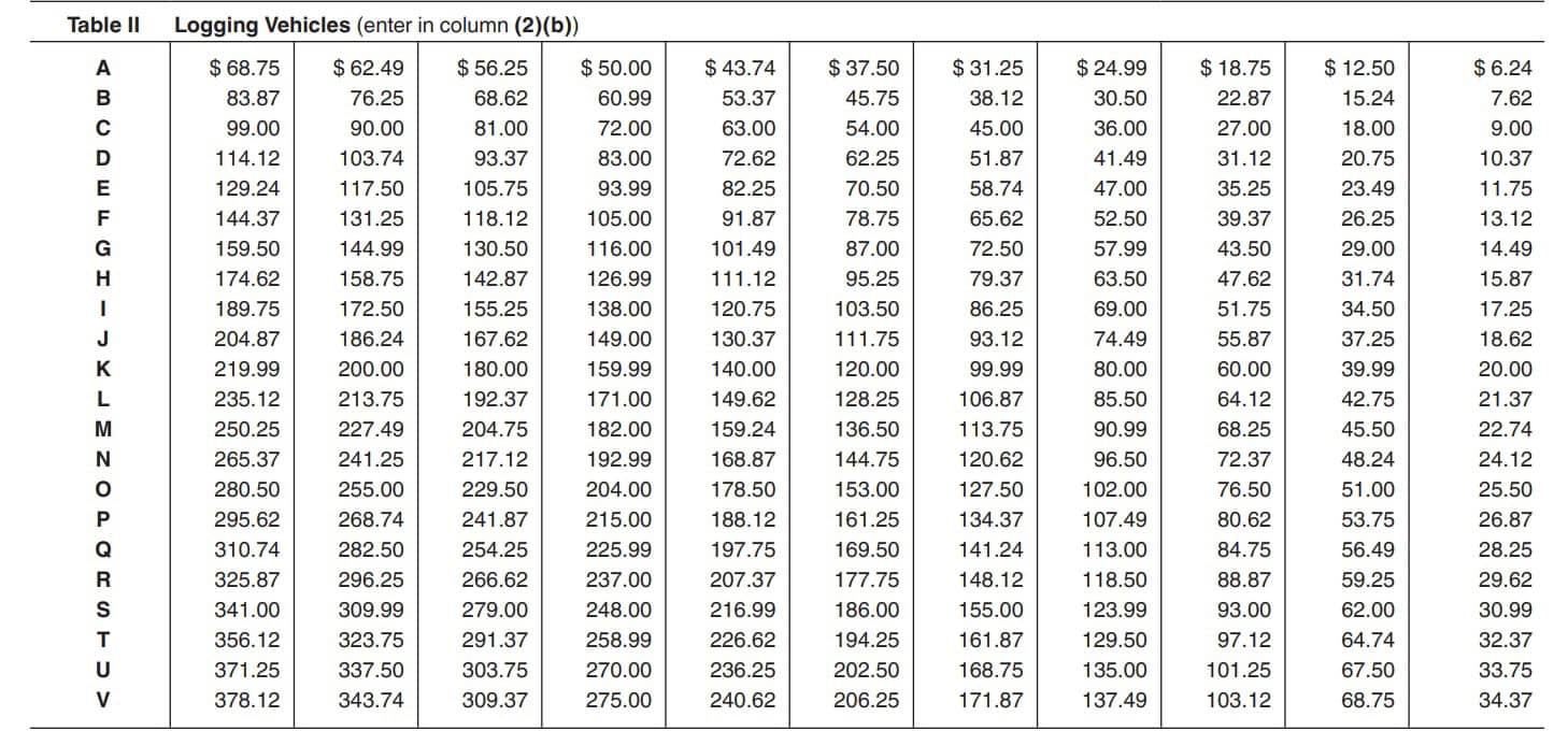 Here is the table that you would use for all non-logging vehicles.