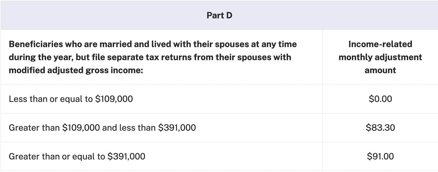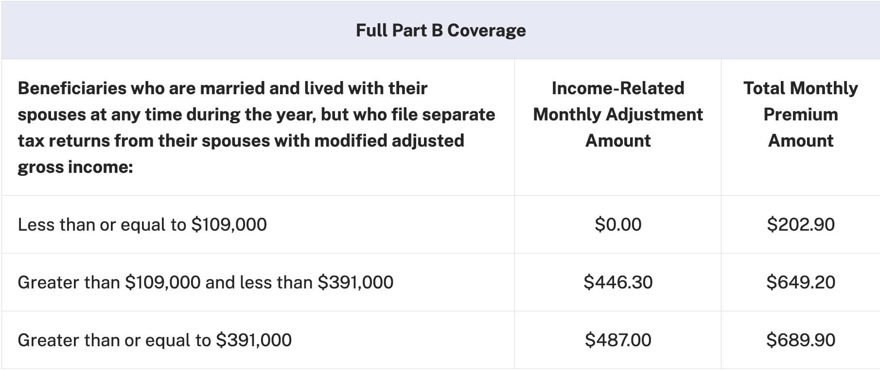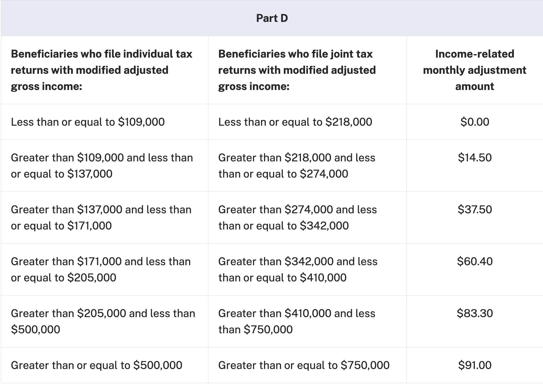 You can see the IRMAA Part B monthly premiums in the following chart: